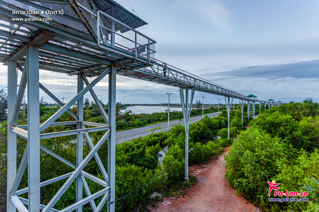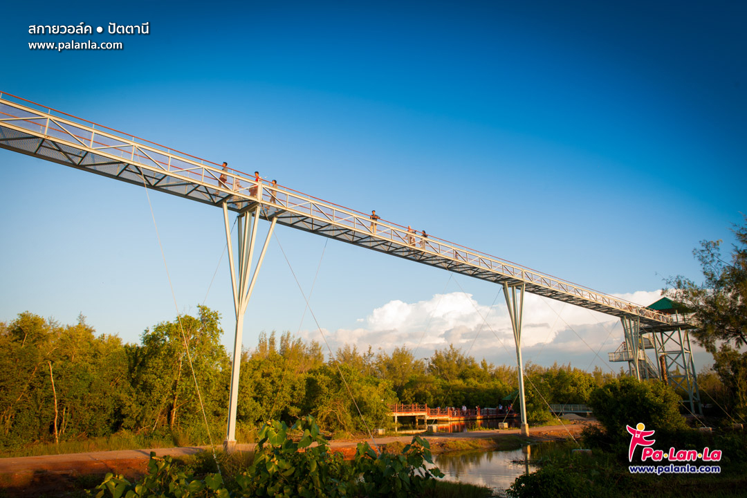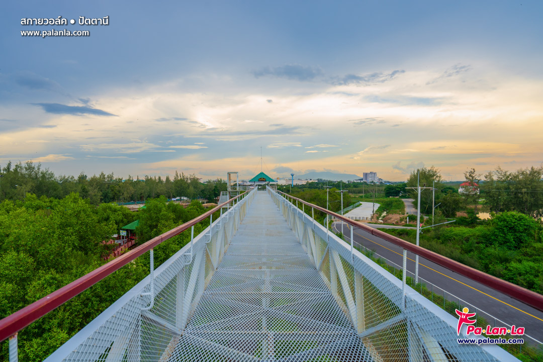 ปัตตานี สกายวอล์ค เป็นทางเดินตาข่ายเหล็กโปร่งความยาว 400 เมตร สูงจากพื้นดินประมาณ 12 เมตร