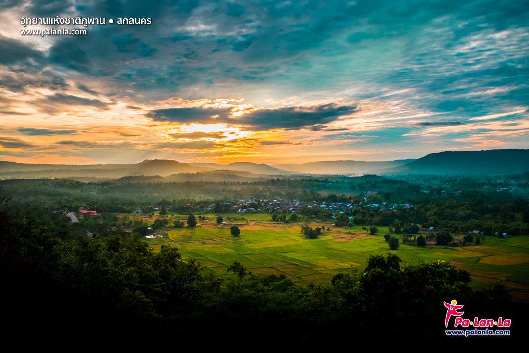 ทัศนียภาพเทือกเขาภูพานและหมู่บ้านในหุบเขา