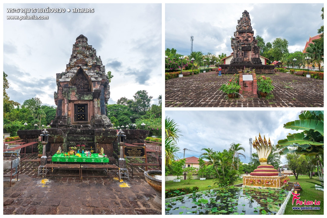 พระธาตุนารายณ์เจงเวงเป็นพระธาตุเก่าแก่ที่มีอายุรุ่นราวคราวเดียวกับพระธาตุเชิงชุม พระธาตุแห่งนี้สร้างด้วยหินทรายเป็นรูปทรงสี่เหลี่ยมบนฐานศิลาแลง มีลักษณะปรางค์แบบขอม และสลักลวดลายรูปพระนารายณ์บรรทมสินธุ์อย่างงดงามบริเวณหน้าบัน พระธาตุนารายณ์เจงเวงจึงเป็นอีกหนึ่งพระธาตุของเมืองสกลนครที่ชาวเมืองให้เคารพศรัทธากันมาอย่างช้านาน และเป็นโบราณสถานที่มีความสำคัญอีกแห่งหนึ่งของจังหวัดสกลนครอีกด้วย