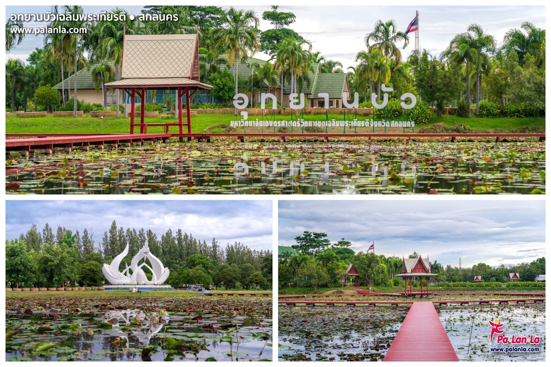 อุทยานบัวเฉลิมพระเกียรติเป็นบึงบัวบนพื้นที่ 10 ไร่ที่จัดแสดงบัวนานาพันธุ์ทั้งในและต่างประเทศที่มีความสวยงามเป็นอย่างมาก นอกจากนี้ยังเป็นสถานที่พักผ่อนหย่อนใจของประชาชนทั่วไป และเป็นแหล่งท่องเที่ยวที่น่าสนใจอีกแห่งหนึ่งของจังหวัดสกลนครอีกด้วย โดยไฮไลท์ของการท่องเที่ยวอุทยานบัวแห่งนี้คือการเดินชมบัวบนสะพานที่ทอดยาวออกไปในบึงได้อย่างใกล้ชิด