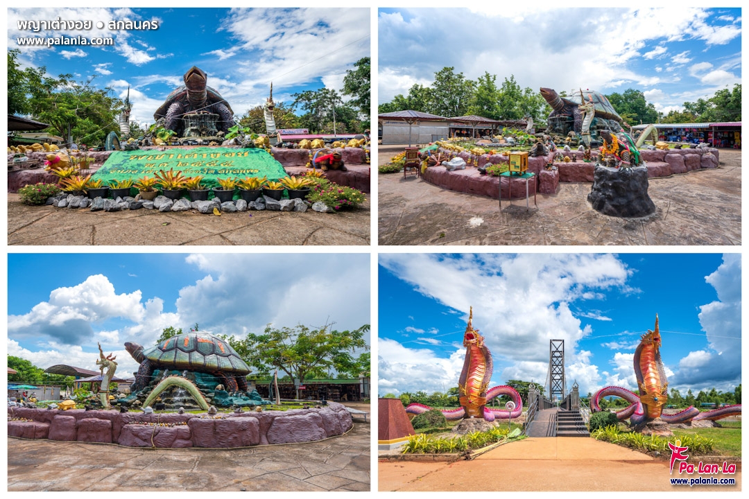 พญาเต่างอยเป็นรูปปั้นเต่าขนาดใหญ่ที่ตั้งอยู่ที่สวนสาธารณะริมลำน้ำพุงในอำเภอเต่างอย รูปปั้นนี้เป็นสัญลักษณ์ของอำเภอเต่างอยและเป็นสิ่งศักดิ์สิทธิ์ที่ชาวบ้านเคารพนับถือ โดยมีความเชื่อกันว่าถ้าได้สักการะบูชาจะเกิดโชคลาภและมีอายุที่ยืนยาว ด้วยเหตุนี้ ในทุกๆ วันจึงมีชาวบ้านและนักท่องเที่ยวเดินทางมาสักการะบูชาพญาเต่างอยและขอโชคลาภกันเป็นจำนวนมาก
