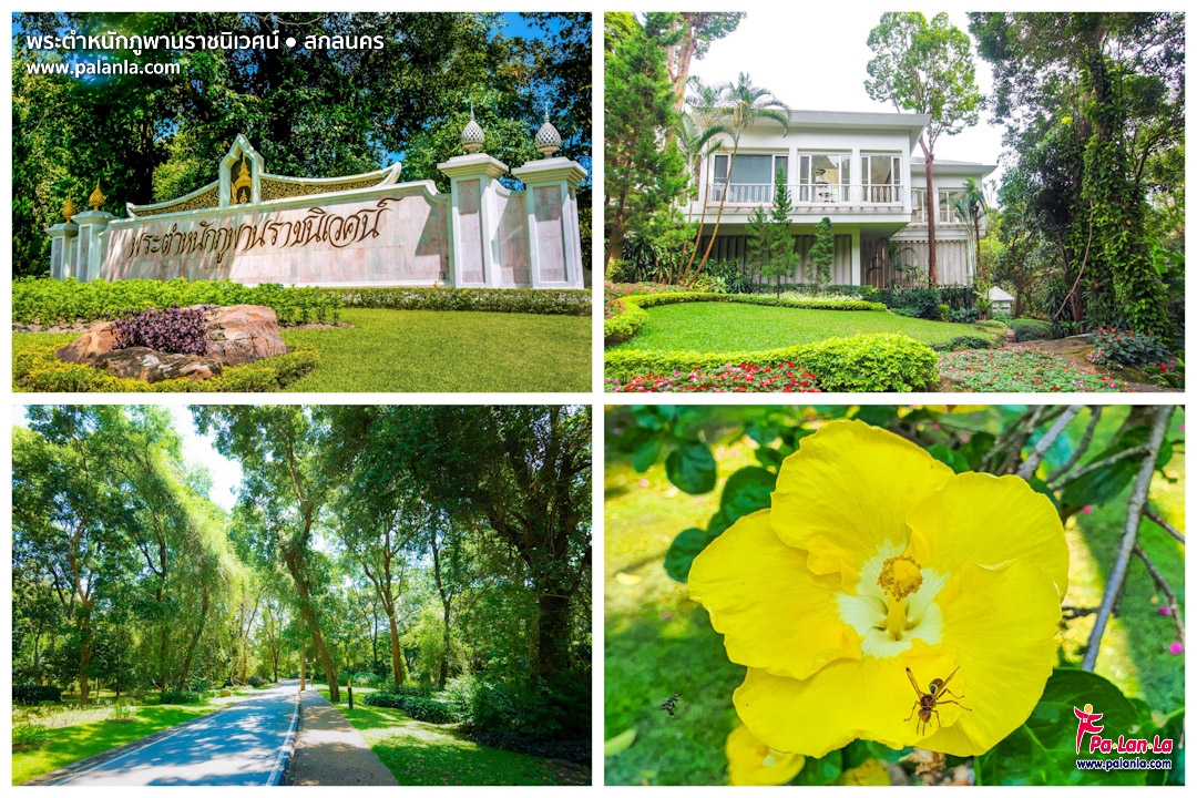 พระตำหนักภูพานราชนิเวศน์เป็นสถานที่ประทับของพระบาทสมเด็จพระเจ้าอยู่หัวรัชกาลที่ 9 และพระบรมวงศานุวงศ์เมื่อครั้งเสด็จแปรพระราชฐานเยี่ยมพสกนิกรในภาคตะวันออกเฉียงเหนือ โดยในระหว่างที่ไม่มีพระองค์ใดประทับอยู่จะเปิดให้ประชาชนเข้าไปเที่ยวชมสวนด้านใน บริเวณโดยรอบพระตำหนักตกแต่งด้วยสวนหลากหลายประเภทและมีต้นไม้นานาพันธุ์ โดยเฉพาะพันธุ์ไม้ดอกจากป่าภูพานสีสันสวยงามที่จะผลิบานในช่วงฤดูหนาว ที่นี่จึงเป็นอีกหนึ่งจุดหมายปลายทางที่ควรแวะชมเมื่อมาเที่ยวยังอำเภอภูพาน