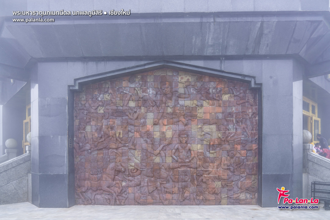 ภาพจิตรกรรมนูนต่ำรอบๆ องค์พระมหาธาตุนภพลภูมิสิริ