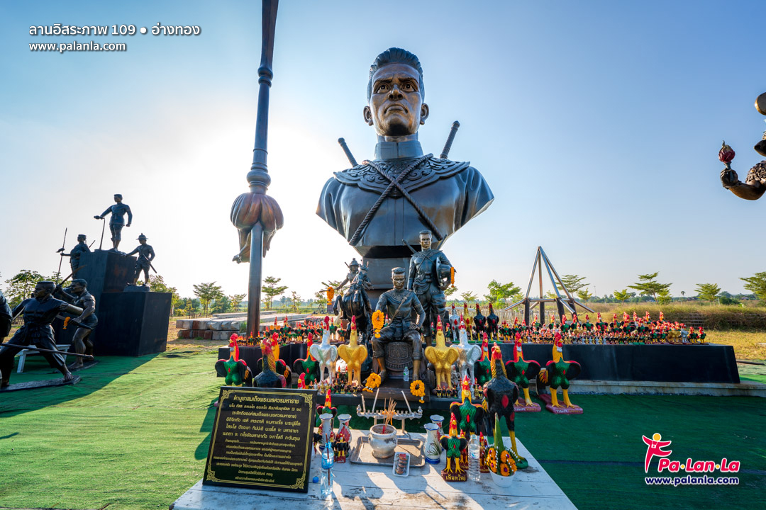 ลานอิสรภาพ ๑๐๙ ตั้งอยู่บนพื้นที่มีประมาณ 200 ไร่ ในตำบลสายทอง อำเภอป่าโมก จังหวัดอ่างทอง เป็นที่ประดิษฐานพระบรมราชานุสาวรีย์สมเด็จพระนเรศวรมหาราช ในพระอิริยาบถทรงหลั่งน้ำทักษิโณทก ประกาศอิสรภาพ ความสูงจากพระบาทถึงพระเศียร ๑๐๙ เมตร ถือเป็นอนุสาวรีย์ที่มีขนาดสูงที่สุดในประเทศไทย และอาจเป็นอนุสาวรีย์องค์สมเด็จพระนเรศวรมหาราชที่ใหญ่ที่สุดของประเทศไทยด้วย