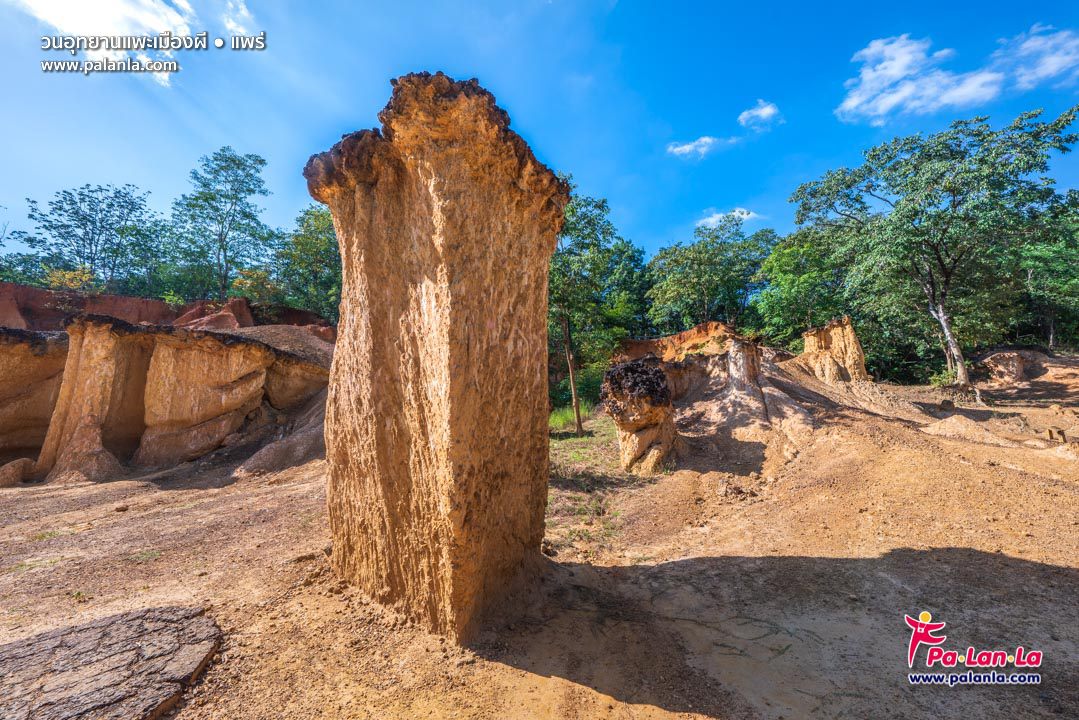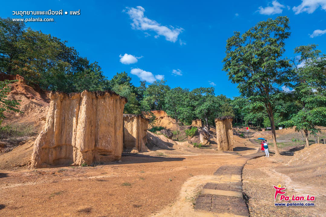 วนอุทยานแพะเมืองผี (Phae Mueang Phi Forest Park) สถานที่ท่องเที่ยวทางธรรมชาติแลนด์มาร์กสำคัญของจังหวัดแพร่ เป็นบริเวณที่มีเสาดินรูปร่างประหลาดซึ่งเกิดจากกระบวนการเปลี่ยนแปลงทางธรณีวิทยา และมีเรื่องเล่าลึกลับที่คนโบราณเล่าสืบต่อกันเกี่ยวกับสถานที่แห่งนี้