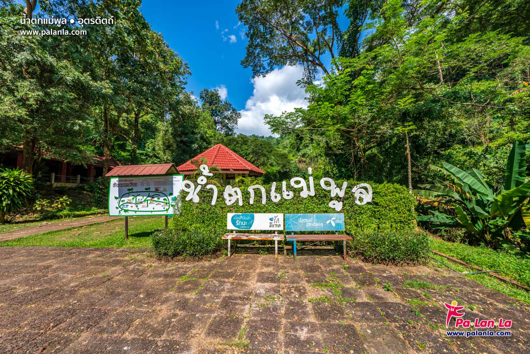 จุดถ่ายรูปกับป้ายน้ำตกแม่พูล