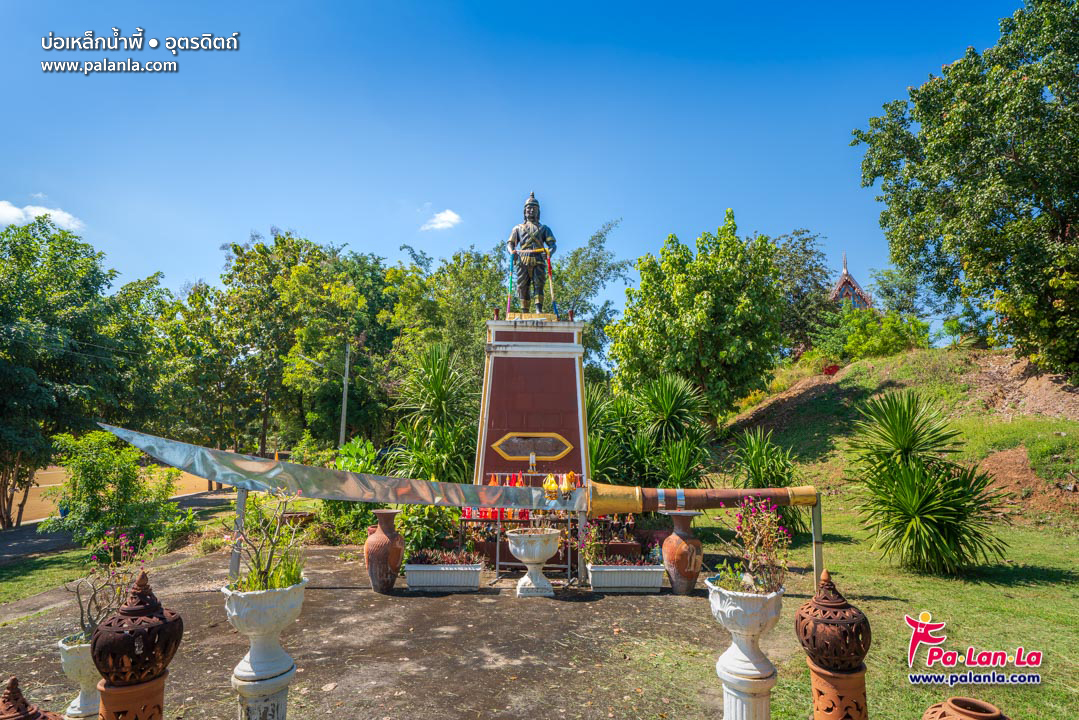 บ่อเหล็กน้ำพี้ ตั้งอยู่หมู่ที่ 1 บ้านน้ำพี้ ตำบลน้ำพี้ อำเภอทองแสนขัน จังหวัดอุตรดิตถ์ เป็นโบราณสถานซึ่งมีความสำคัญ เนื่องจากเป็นแหล่งเหล็กกล้าที่นำมาทำพระแสงดาบตั้งแต่สมัยโบราณ เดิมมีอยู่ด้วยกันหลายบ่อ มีบ่อหนึ่งเรียกว่า “บ่อพระแสง” เป็นบ่อที่ห้ามมิให้ผู้ใดขุดเหล็กจากบ่อนี้ โดยสงวนไว้ใช้ทำพระแสงดาบสำหรับพระมหากษัตริย์เท่านั้น และ “บ่อพระขรรค์” เป็นบ่อที่ในสมัยโบราณมีช่างทำพระขรรค์ถวายพระมหากษัตริย์ได้นำแร่เหล็กน้ำพี้จากบ่อนี้ไปถลุงทำพระขรรค์