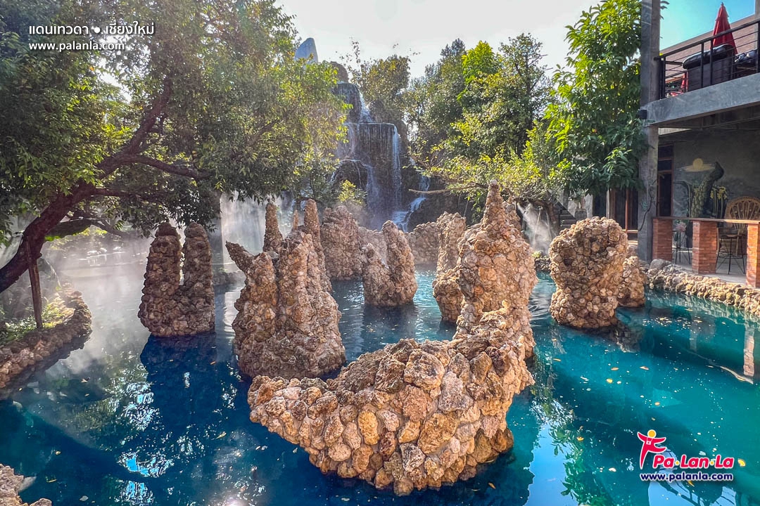 ธารน้ำสีฟ้าที่ตกแต่งด้วยโขดหินภายในแดนเทวดา