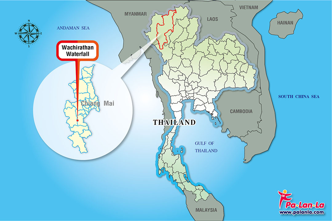 แผนที่ตั้ง น้ำตกวชิรธาร (Wachirathan Waterfall) จังหวัดเชียงใหม่ ประเทศไทย