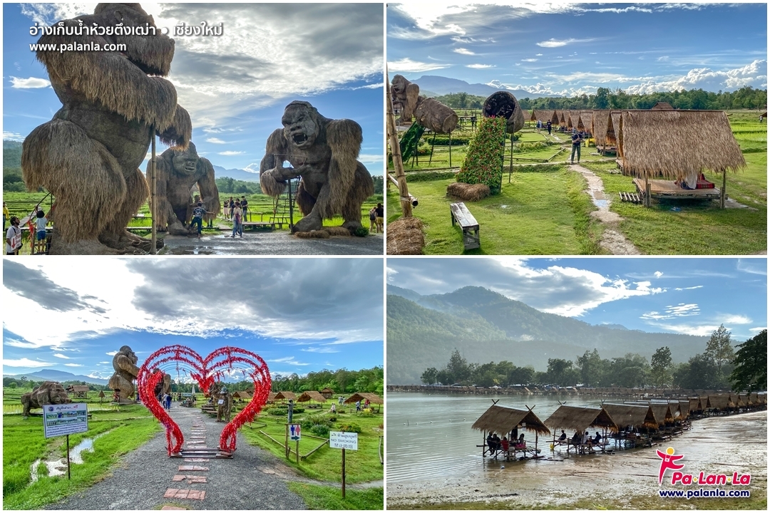 อ่างเก็บน้ำห้วยตึงเฒ่า เดิมทีเป็นโครงการในพระราชดำริเพื่อแก้ไขปัญหาน้ำไม่เพียงพอต่อการเกษตรในบริเวณดังกล่าวก่อนที่จะได้รับการพัฒนาให้กลายมาเป็นแหล่งท่องเที่ยวที่สำคัญ จนที่นี่กลายเป็นแลนด์มาร์กที่ชาวเชียงใหม่ชื่นชอบ ถึงขนาดมีคำเรียกกันว่า “ทะเล (น้ำจืด) แห่งเมืองเชียงใหม่” ด้วยธรรมชาติที่สวยงามและบรรยากาศที่ผ่อนคลาย แพริมน้ำ ร้านอาหารอร่อยๆ หลายสิบร้าน รวมถึงหุ่นฟางรูปสัตว์ต่างๆ ขนาดมหึมาท่ามกลางท้องทุ่งสีเขียวที่เป็นขวัญใจสายถ่ายภาพจะต้องไม่พลาด