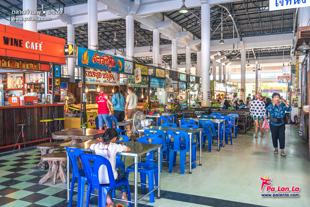 โซนที่นั่งบริเวณร้านอาหารภายในตลาดบ้านเพ