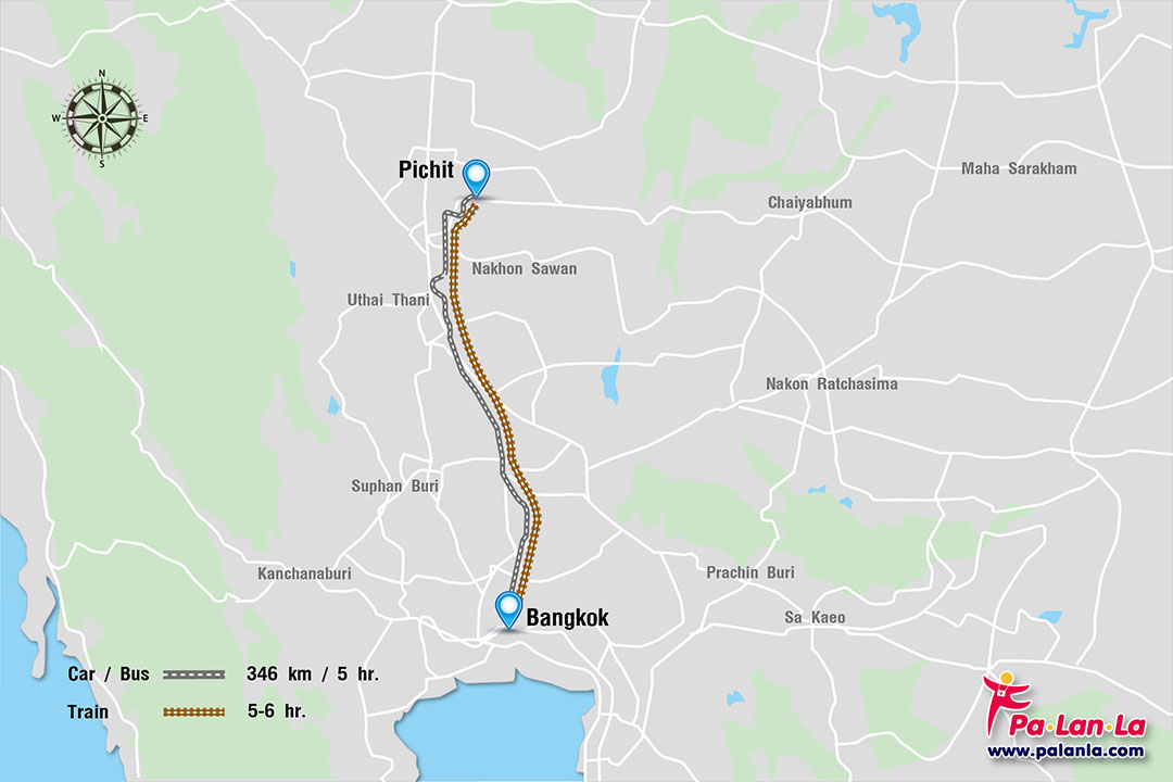 - รถยนต์ (Car/ Bus) การเดินทางโดยรถยนต์จากกรุงเทพฯ ไปจังหวัดพิจิตร มีระยะทาง 346 กิโลเมตร ใช้เวลาเดินทางประมาณ 5 ชั่วโมง