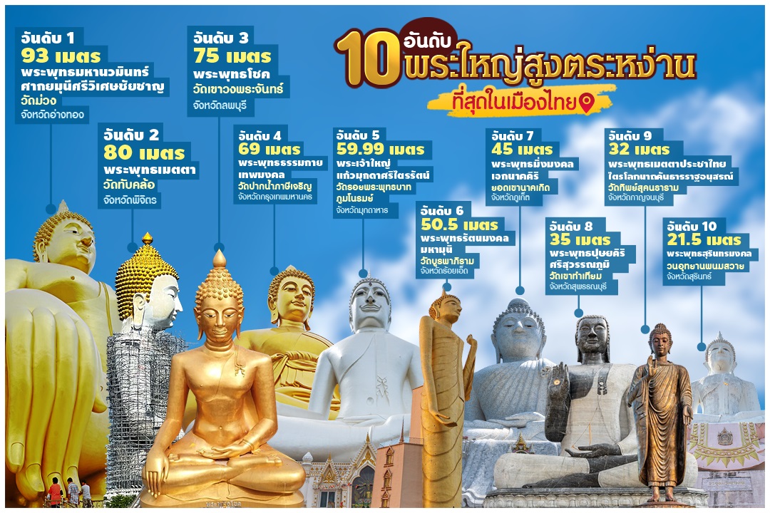 - 10 อันดับพระใหญ่สูงตระหง่านที่สุดในเมืองไทย