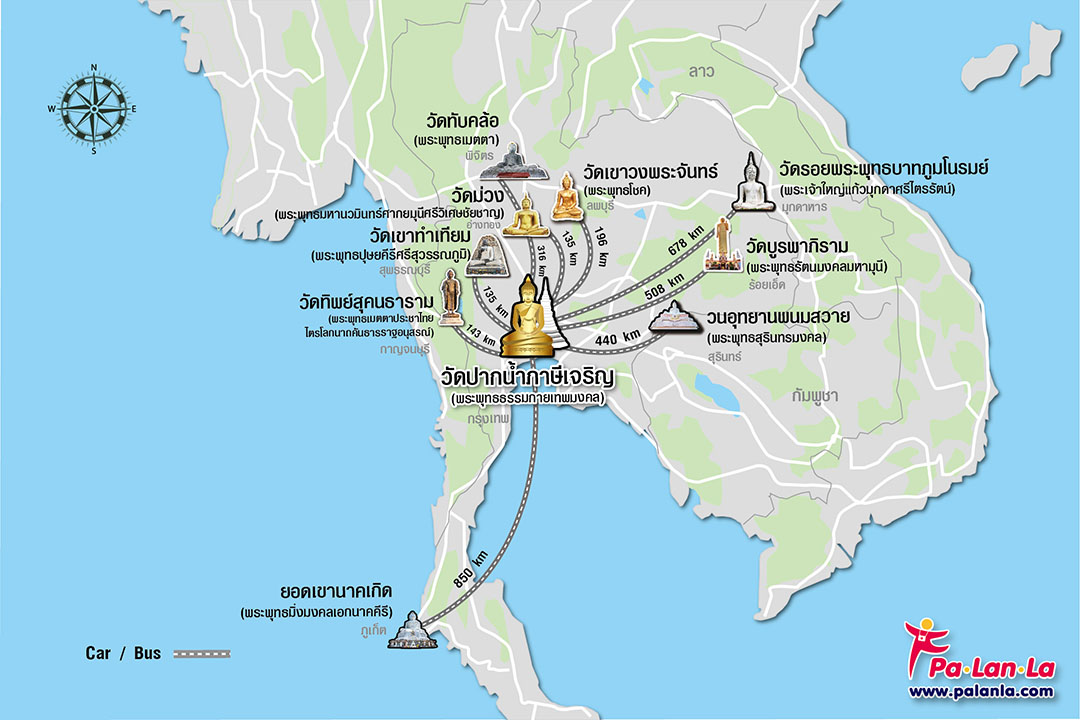 แผนที่แสดงตำแหน่งของ 10 อันดับพระใหญ่สูงตระหง่านที่สุดในเมืองไทย