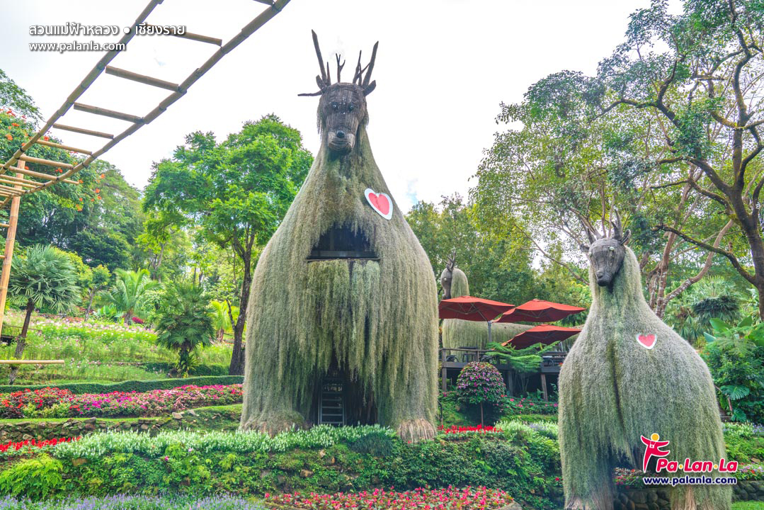 หุ่นกวางที่ทำขึ้นจากต้นไม้ภายในสวน