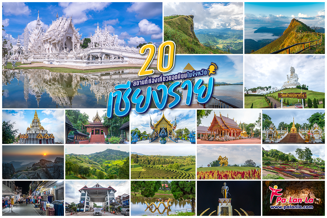 จังหวัดเชียงรายเป็นจังหวัดที่อยู่เหนือสุดของประเทศไทยและมีอาณาเขตติดต่อกับประเทศประเทศพม่าและประเทศลาว จังหวัดเชียงรายเป็นจังหวัดยอดนิยมในการท่องเที่ยวอีกแห่งหนึ่งของเมืองไทย โดยมีสถานที่ท่องเที่ยวหลายแห่งให้เที่ยวชม ไม่ว่าจะเป็นสถานที่ท่องเที่ยวทางธรรมชาติที่เป็นจุดชมวิวทะเลหมอกอันสวยงามน่าประทับใจบนยอดดอยต่างๆ เช่น ภูชี้ฟ้า และ ภูชี้ดาว ตลอดจนวัดวาอารามเก่าแก่ต่างๆ อย่างเช่น วัดพระธาตุดอยตุง รวมถึงแลนด์มาร์กอย่างวัดร่องขุ่นและวัดร่องเสือเต้นที่รังสรรค์ขึ้นด้วยศิลปะที่วิจิตรงดงามและมีเอกลักษณ์เฉพาะตัวจากศิลปินเอกของไทย ซึ่งที่กล่าวมานี้เป็นเพียงส่วนหนึ่งของสถานที่ท่องเที่ยวเด่นๆ ในจังหวัดเชียงรายเท่านั้น วันนี้ทาง Palanla จึงได้รวบรวม 20 สถานที่ท่องเที่ยวยอดนิยมในจังหวัดเชียงรายมาฝากทุกท่านกับในบทความนี้เพื่อใช้เป็นแนวทางวางแผนท่องเที่ยวจังหวัดเชียงรายสำหรับวันหยุดยาวครั้งหน้ากัน