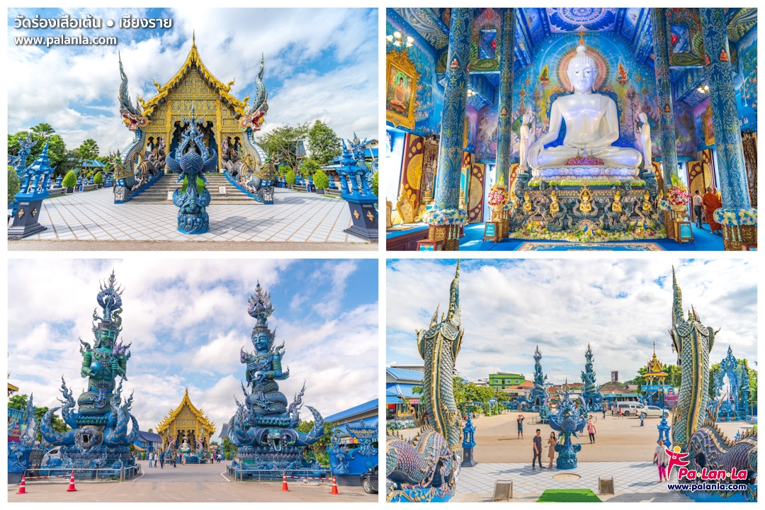 วัดร่องเสือเต้น (Wat Rong Suer Ten) เป็นวัดที่โดดเด่นด้วยวิหารโทนสีฟ้าอมน้ำเงินแซมทองที่มีความวิจิตรงดงามและสวยแปลกตาแตกต่างจากวัดทั่วไป วัดแห่งนี้สร้างและออกแบบโดยนายพุทธา กาบแก้ว หรือสล่านก ศิลปินพื้นบ้านชาวเชียงรายผู้เป็นลูกศิษย์ของอาจารย์เฉลิมชัย โฆษิตพิพัฒน์ ศิลปินดังผู้สร้างสร้างวัดร่องขุ่นที่มีชื่อเสียงไปทั่วโลก ภายในวิหารเป็นที่ประดิษฐานพระพุทธรัชมงคลบดีตรีโลกนาถสีขาวมุก บริเวณพระเศียรของพระพุทธรูปบรรจุพระบรมสารีริกธาตุ นับเป็นอีกวัดของจังหวัดเชียงรายที่ไม่ควรพลาดมาเที่ยวชม