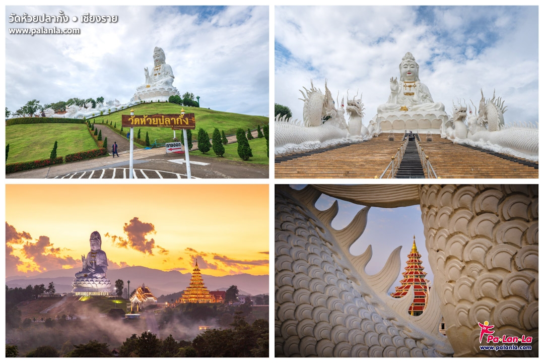 วัดห้วยปลากั้ง (Wat Huay Pla Kang) เป็นวัดที่มีความสวยงามอีกแห่งหนึ่งของจังหวัดเชียงราย วัดแห่งนี้มีเอกลักษณ์จาก องค์พระโพธิสัตว์เจ้าแม่กวนอิมสีขาวองค์ใหญ่ความสูง 69 เมตร ด้านในมี 23 ชั้นซึ่งเปิดให้นักท่องเที่ยวสามารถขึ้นไปชมทัศนียภาพที่สวยงามของเมืองเชียงรายได้ นอกจากนี้บริเวณใกล้กันยังเป็นที่ตั้งของพบโชคธรรมเจดีย์ซึ่งเป็นเจดีย์สูง 9 ชั้นทรงแหลม สร้างด้วยศิลปะแบบจีนผสมล้านนา ภายในมีพระพุทธรูปประดิษฐานประจำอยู่แต่ละชั้น สองสิ่งนี้สามารถมองเห็นได้จากในระยะไกล ถือเป็นแลนด์มาร์กที่มีความยิ่งใหญ่อีกแห่งหนึ่งของเชียงราย