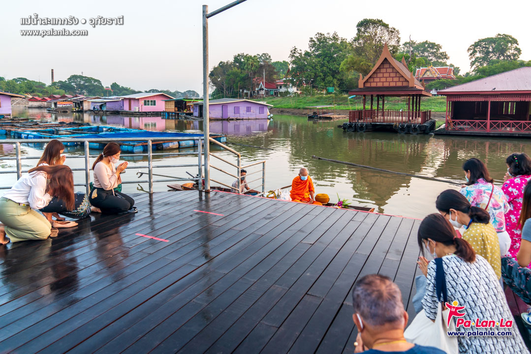 พระสงฆ์ล่องเรือออกบิณฑบาตรยามเช้า
