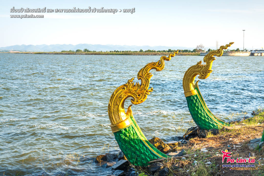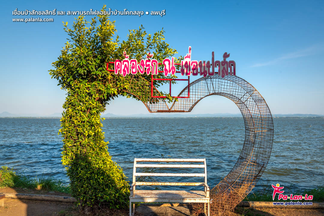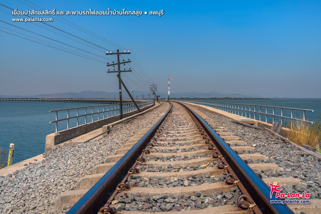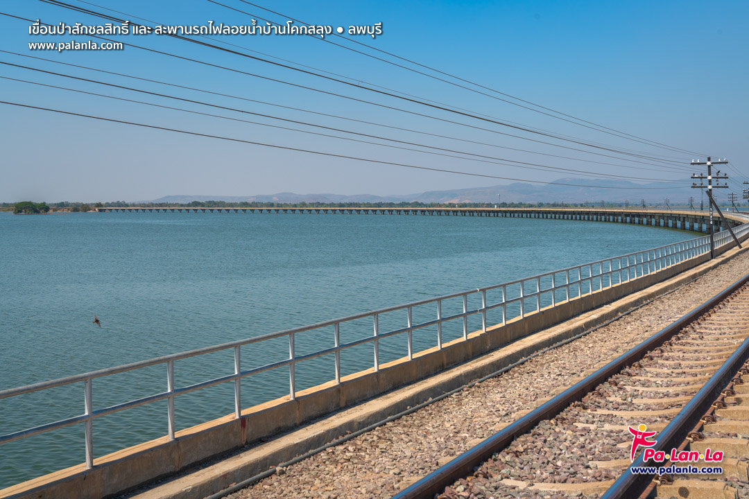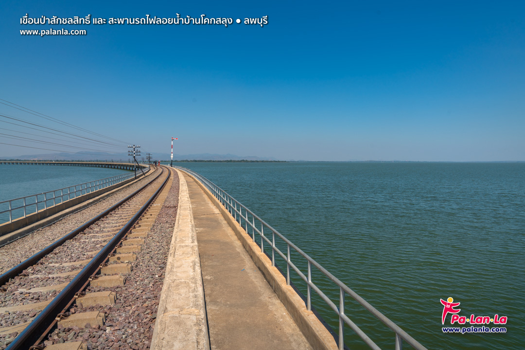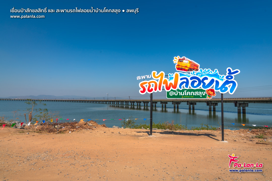 สำหรับเขื่อนป่าสักชลสิทธิ์นั้นตั้งอยู่ที่ตำบลหนองบัว อำเภอพัฒนานิคม จังหวัดลพบุรี และตำบลพราน อำเภอวังม่วง จังหวัดสระบุรี บนพื้นที่ 105,300 ไร่เป็นเขื่อนดินกักเก็บน้ำที่มีความยาวที่สุดในประเทศไทย มีขนาดความจุอ่างเก็บน้ำ 960 ล้านลูกบาศก์เมตรสร้างขึ้นตามแนวพระราชดำริของพระบาทสมเด็จพระเจ้าอยู่หัว รัชกาลที่ 9 เพื่อป้องกันปัญหาน้ำท่วม เริ่มดำเนินการก่อสร้างในวันที่ 2 ธันวาคม พ.ศ. 2537 ใช้เวลาในการก่อสร้างเขื่อนเป็นเวลา 5 ปี ปัจจุบันพื้นที่ในแถบนี้ได้รับการพัฒนาให้เป็นแหล่งท่องเที่ยวและมีจุดชมวิวสวยๆ อยู่หลายแห่ง โดยหนึ่งในนั้นก็คือสะพานรถไฟลอยน้ำบ้านโคกสลุงที่กำลังเป็นที่นิยมกันในขณะนี้นั่นเอง โดยเป็นทางรถไฟที่วิ่งระหว่างสถานีโคกสลุงกับสถานีสุรนารายณ์ นักท่องเที่ยวที่สนใจนั่งรถไฟเที่ยวชมสามารถสอบถามข้อมูลได้ที่สถานีรถไฟโคกสลุง หรือจะเดินชมวิวและถ่ายภาพบริเวณริมทางรถไฟขณะที่ยังไม่มีรถไฟแล่นก็ได้