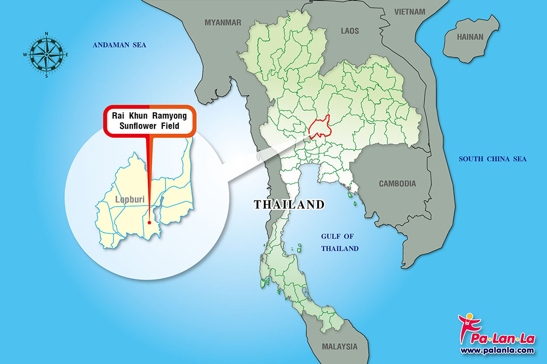 แผนที่ตั้ง ทุ่งทานตะวันไร่คุณรำยอง จังหวัดลพบุรี ประเทศไทย