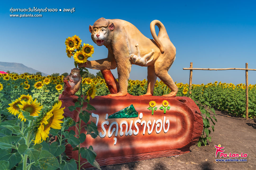 มุมถ่ายภาพรูปปั้นลิงถือดอกทานตะวัน