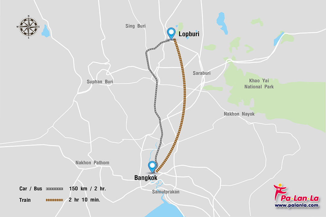 - อื่นๆ (others) หากต้องการเดินทางโดยรถทัวร์ ให้ไปขึ้นรถที่สถานีขนส่งหมอชิต2 แล้วลงที่สถานีขนส่งลพบุรี โดยสามารถตรวจสอบข้อมูลเวลาเดินรถ และค่าโดยสารได้ที่ เว็บไซต์บริษัทขนส่งจำกัด (บขส) https://ticket.transport.co.th/
