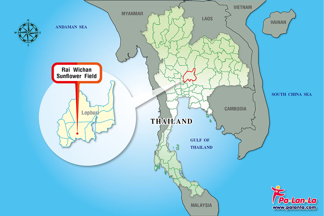แผนที่ตั้ง ทุ่งทานตะวันไร่วิชาญ (Rai Wichan Sunflower Field) จังหวัดลพบุรี ประเทศไทย