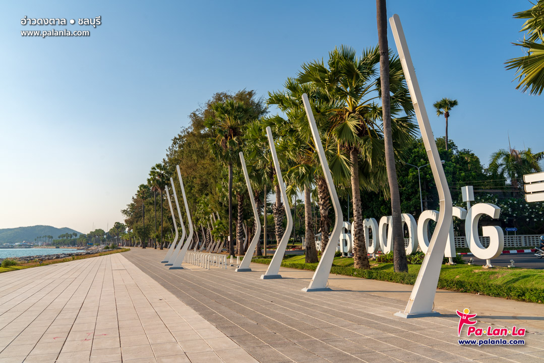 ทางเดินคอนกรีตกว้างขวางรอบๆ อ่าวดงตาล