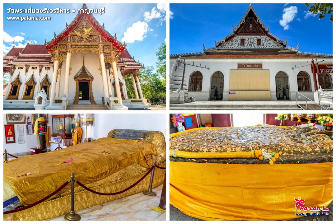 วัดพระแท่นดงรังวรวิหาร (Wat Phra Thaen Dong Rang Worawihan) เป็นวัดเก่าแก่อายุร้อยกว่าปีอีกแห่งหนึ่งในจังหวัดกาญจนบุรีที่น่าไปเที่ยวชม ภายในวัดมีโบราณสถานทางพุทธศาสนาอันทรงคุณค่าคือพระแท่นดงรัง ซึ่งถือเป็นโบราณสถานจำลองเครื่องหมายแห่งเหตุการณ์ปรินิพพานของพระพุทธเจ้า พระแท่นดงรังมีลักษณะเป็นหินแท่งทึบคล้ายแท่นหรือเตียงนอน ซึ่งเดิมทีพบในป่ารังซึ่งมีต้นรังอยู่ริมพระแท่นข้างละต้นและโน้มยอดเข้าหากันจึงเรียกพระแท่นนี้ว่าพระแท่นดงรัง นอกจากนี้ภายในวัดยังมีพระพุทธบาทจำลองที่ทำจากไม้แกะสลักประดับมุก และมีสิ่งปลูกสร้างเก่าแก่มากมายให้เที่ยวชม