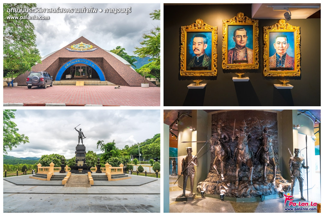 อุทยานประวัติศาสตร์สงครามเก้าทัพ (The Nine Army Battle Historical Park) เป็นอุทยานการเรียนรู้ที่ถ่ายทอดเรื่องราวทางประวัติศาสตร์ของสงครามเก้าทัพเมื่อในอดีต โดยภายในบริเวณมีอาคารศูนย์การเรียนรู้จัดแสดงประวัติความเป็นมาของสงครามเก้าทัพเอาไว้โดยละเอียด ทั้งการจัดทัพ การนำทัพ หลักการใช้ภูมิประเทศ และเส้นทางเดินทัพ รวมถึงกลยุทธ์ต่างๆ ที่เกี่ยวข้อง นอกจากนี้ภายในอุทยานแห่งนี้ยังมีพระบวรราชานุสาวรีย์สมเด็จพระบวรราชเจ้ามหาสุรสิงหนาทซึ่งเป็นผู้นำทัพหลวงด่านหน้าที่สามารถต้านกองทัพพม่าที่เข้ามาทางจังหวัดกาญจนบุรีได้จนฝ่ายกองทัพพม่าต้องแพ้พ่ายไปในที่สุด
