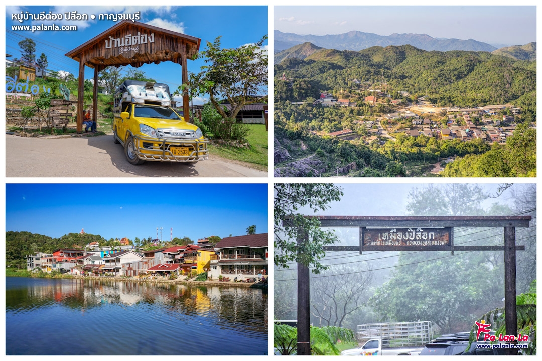 หมู่บ้านอีต่อง ปิล๊อก (Moo Ban E Tong Pilok) ตั้งอยู่ที่ ตำบลปิล๊อก เป็นหมู่บ้านที่อยู่ใกล้กับพื้นที่ชายแดนระหว่างประเทศไทยกับประเทศพม่าโดยมีเทือกเขาตะนาวศรีเป็นแนวเขตแบ่งแดน เอกลักษณ์ของหมู่บ้านแห่งนี้คือธรรมชาติอันอุดมสมบูรณ์และทิวทัศน์ป่าไม้และภูเขาอันเขียวขจี และเป็นที่ตั้งของเหมืองเก่าที่เคยรุ่งเรืองเมื่อในอดีตที่ยังคงหลงเหลืออาคาร เครื่องมือเครื่องจักร และรถเก่าเมื่อในอดีตให้ระลึกถึงอีกด้วย นอกจากนี้ภายในบริเวณยังมีสถานที่ท่องเที่ยวและจุดชมวิวสวยๆ อยู่หลายแห่ง เช่น จุดชมวิวเนินช้างศึก น้ำตกจ๊อกกระดิ่น และวัดเหมืองแร่ปิล๊อก