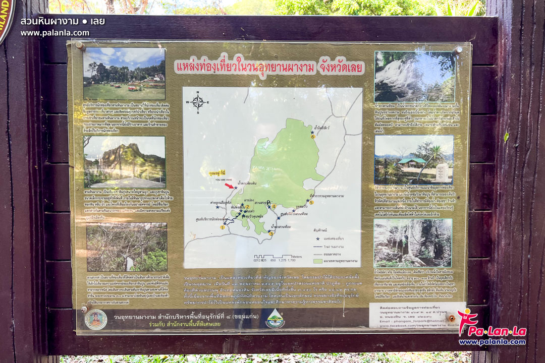 ป้ายแสดงสถานที่ท่องเที่ยวภายในวนอุทยานผางาม