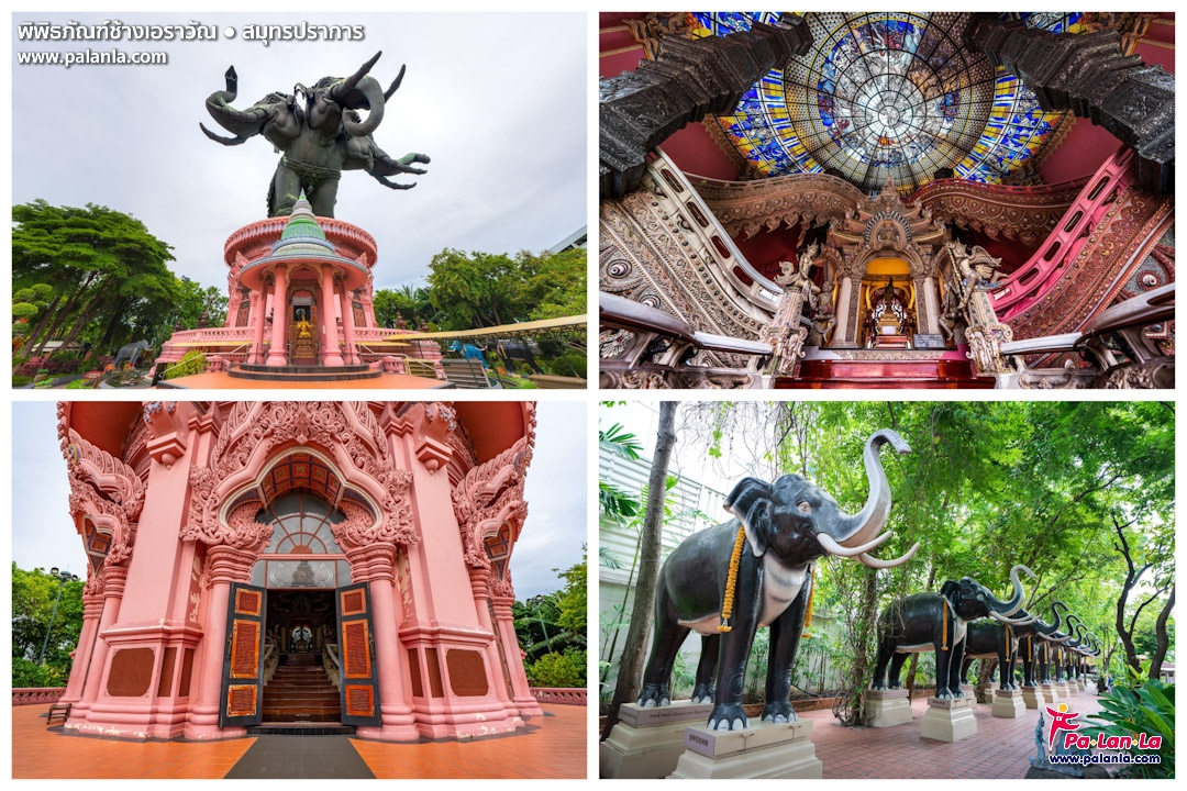 พิพิธภัณฑ์ช้างเอราวัณ (The Erawan Museum) เป็นพิพิธภัณฑ์ที่โดดเด่นด้วยประติมากรรมช้างสามเศียรขนาดใหญ่ที่สามารถมองเห็นได้จากในระยะไกล พิพิธภัณฑ์แห่งนี้เป็นสถานที่แสดงผลงานศิลปะที่ผสมผสานกับความเชื่อทางศาสนาไว้อย่างลงตัว ภายในแบ่งการจัดแสดงเป็น 3 ส่วนตามการแบ่งภพภูมิในคัมภีร์ไตรภูมิกถา ได้แก่ ชั้นสุวรรณภูมิ ชั้นโลกมนุษย์ และชั้นจักรวาล นักท่องเที่ยวจะได้ชมผลงานศิลปะชั้นสูงทั้งเครื่องกระเบื้อง เครื่องเบญจรงค์ งานกระจกสี และงานประติมากรรมอันวิจิตรงดงาม และสามารถเดินชมสวนโดยรอบที่ตกแต่งไว้อย่างร่มรื่นและสวยงาม รวมทั้งสักการะองค์ช้างสามเศียรที่เชื่อกันว่ามีความศักดิ์สิทธิ์เป็นอย่างมาก