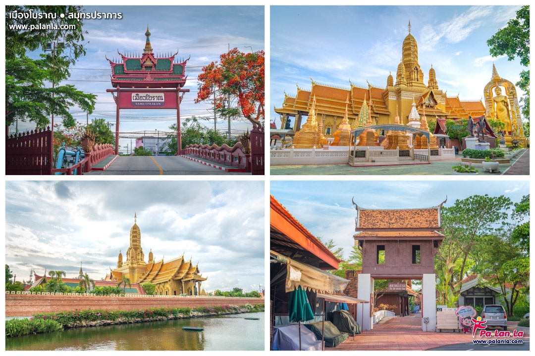 เมืองโบราณ (Ancient City) เป็นพิพิธภัณฑ์กลางแจ้งที่จำลองสถานที่สำคัญทั่วไทยมาไว้บนพื้นที่กว่า 800 ไร่ เพื่อเป็นแหล่งการเรียนรู้ผ่านการท่องเที่ยวเพื่อให้เห็นถึงประเพณีและวัฒนธรรมของไทยที่ถ่ายทอดผ่านประติมากรรมและสถาปัตยกรรมต่างๆ ภายในแบ่งออกเป็น 4 ภาค ได้แก่ ภาคเหนือ ภาคอีสาน ภาคกลาง และภาคใต้ แต่ละภาคก็จะมีสถานที่จำลองของภาคนั้นๆ ภายในบริเวณมีจุดบริการรถและเรือรับส่งไปยังจุดต่างๆ ของเมืองโบราณ และยังมีบริการเช่าชุดไทยไว้ใส่ถ่ายภาพสวยๆ กันด้วย