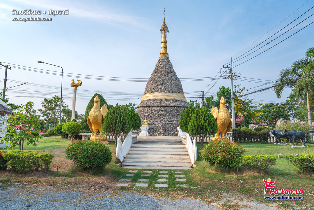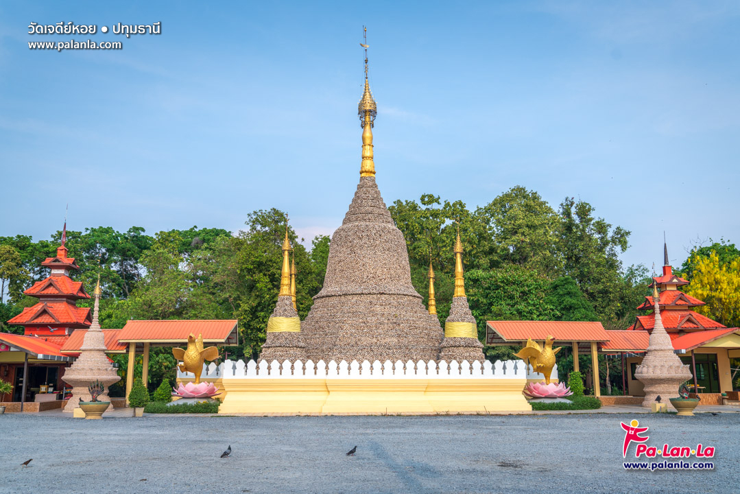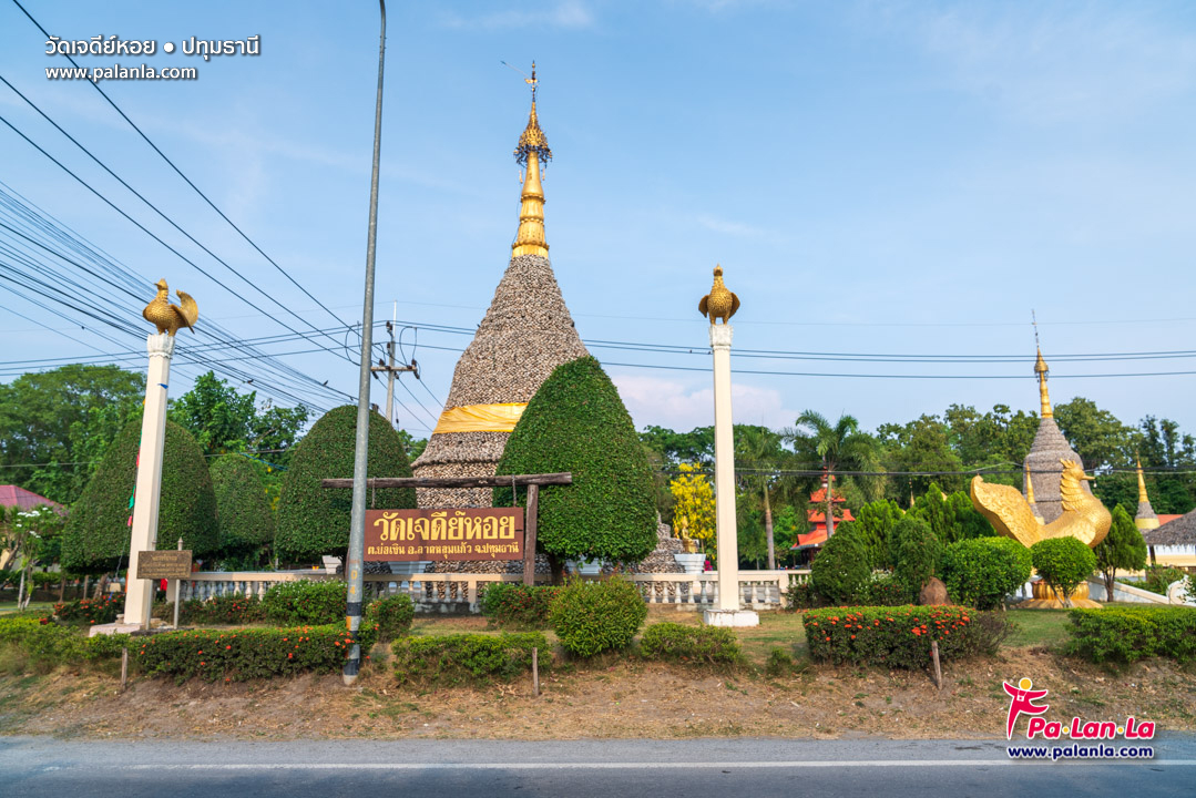 วัดเจดีย์หอย (Wat Chedi Hoi) เป็นวัดที่ได้มีการขุดพบซากหอยโบราณจำนวนมากขณะเริ่มสร้างวัด และได้มีการนำซากหอยเหล่านั้นมาสร้างเป็นเจดีย์ขึ้นจนกลายเป็นที่สนใจนับแต่นั้นมาเนื่องจากมีความแปลกตา และซากหอยโบราณปริมาณมากนี้เป็นที่น่าตื่นตาตื่นใจสำหรับผู้ที่ได้พบเห็น วัดแห่งนี้จึงเป็นอีกหนึ่งวัดในจังหวัดปทุมธานีที่ได้รับความนิยมจากนักท่องเที่ยวเป็นอย่างมาก