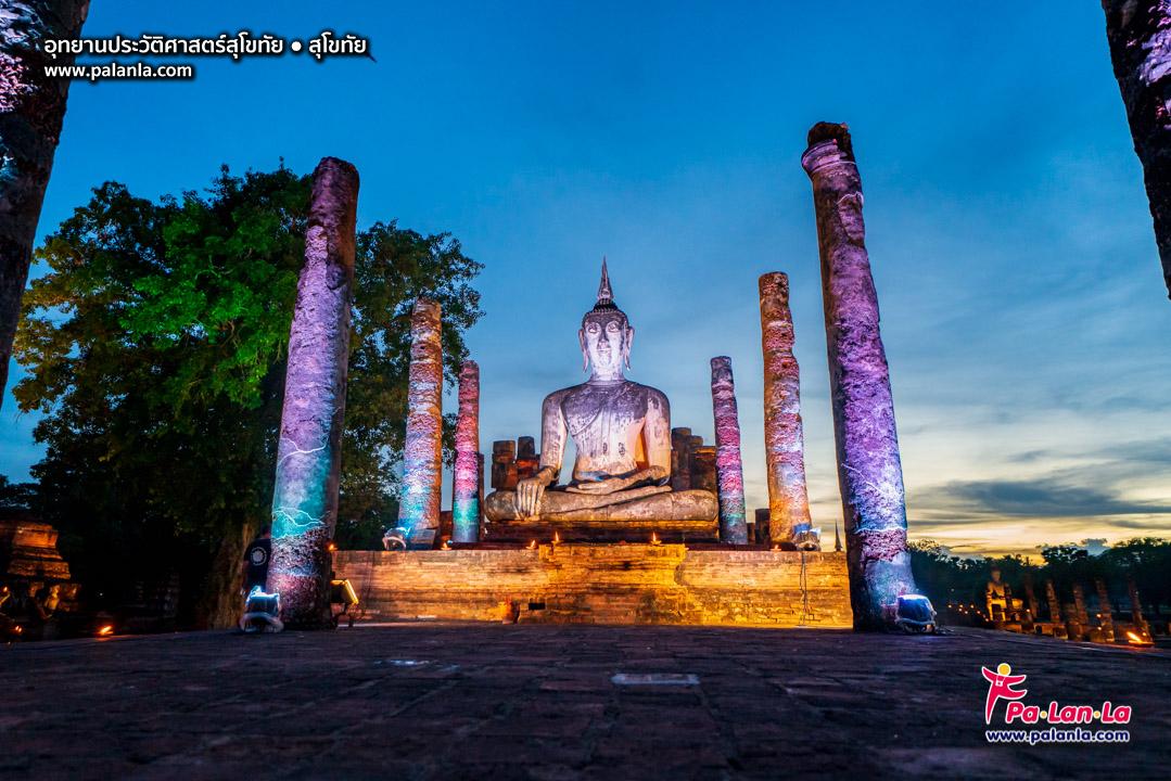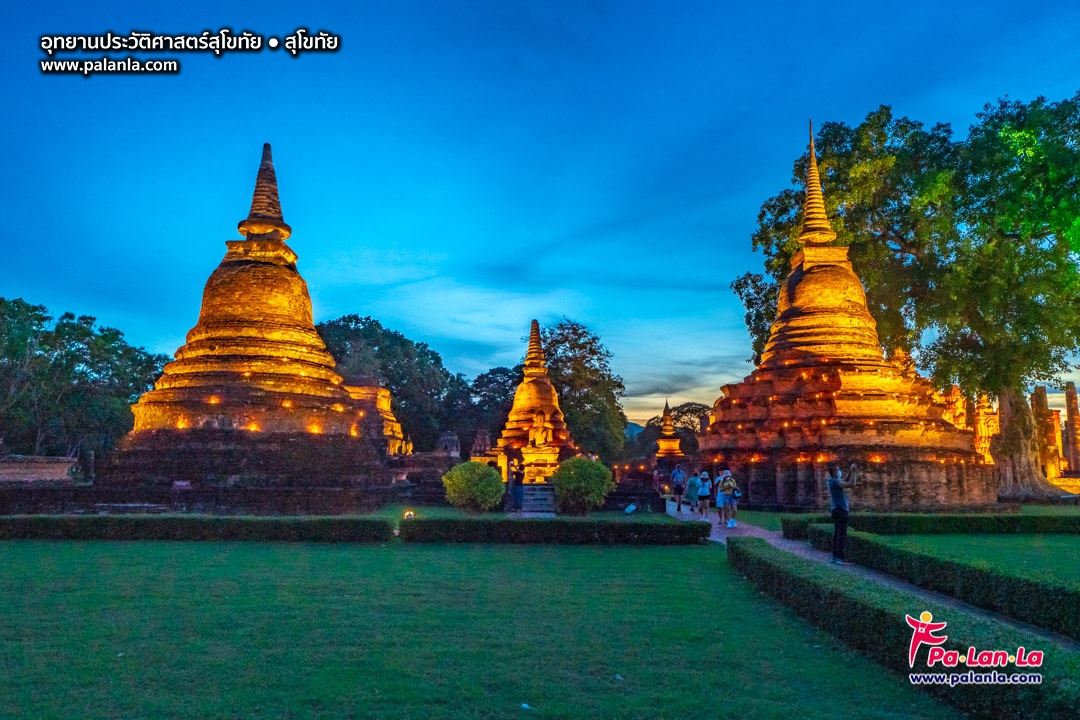 บรรยากาศยามพลบค่ำบริเวณโบราณสถานวัดมหาธาตุ วัดหลวงแห่งกรุงสุโขทัย