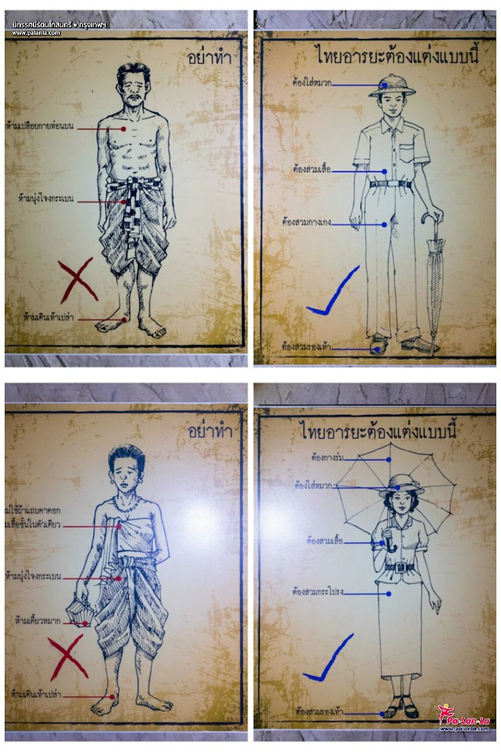 ป้ายแนะนำการแต่งกายของผู้ชายและผู้หญิงในสมัยจอมพล ป. พิบูลสงคราม