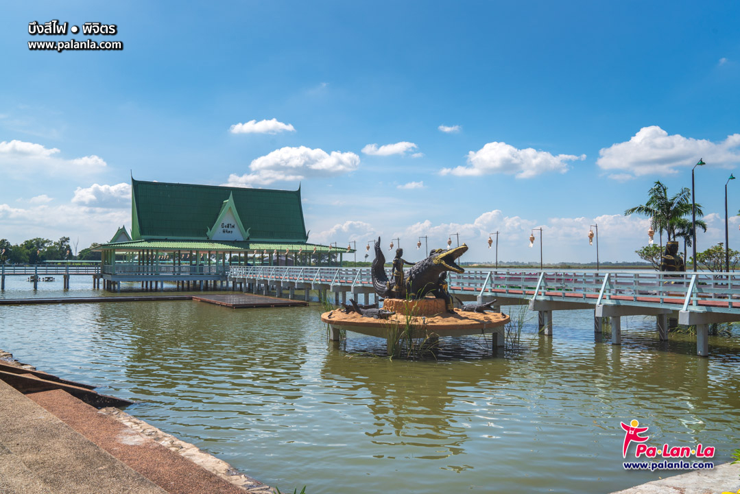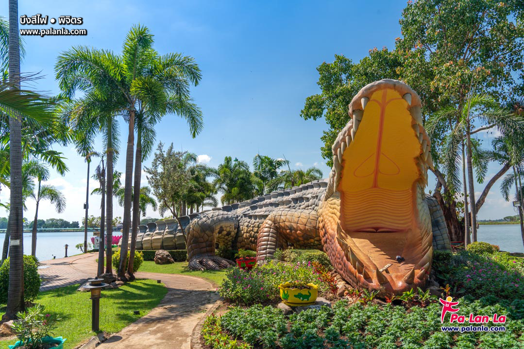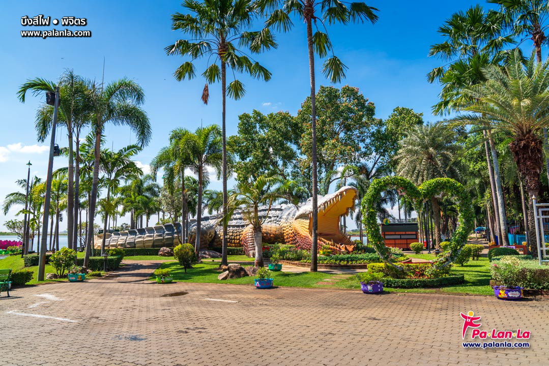 สวนริมบึงเป็นที่ตั้งของรูปปั้นพญาชาละวันหรือจระเข้ยักษ์
