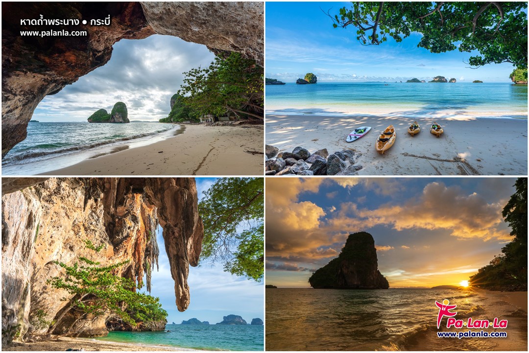 หาดถ้ำพระนาง (Phra Nang Cave Beach) อยู่ในพื้นที่ของ ต.อ่าวนาง จ.กระบี่ ซึ่งอยู่ไม่ไกลจากหาดไร่เลย์มากนัก หาดถ้ำพระนางเป็นชายหาดอีกแห่งของจังหวัดกระบี่ที่มีความสวยงามของท้องทะเล และภูเขาหินปูน มีกิจกรรมให้เล่นมากมายทั้งกิจกรรมทางน้ำอย่างการพายเรือคายัค และการปีนหน้าผา และยังเป็นจุดชมวิวพระอาทิตย์ตกอีกแห่งที่มีความสวยงามน่าประทับใจ นอกจากนี้ นักท่องเที่ยวที่มาเยือนสามารถเดินไปเที่ยวชมถ้ำพระนางที่อยู่บริเวณสุดหาด ภายในโถงถ้ำมีหินงอกหินย้อย และศาลพระนาง ที่ชาวบ้าน และชาวประมงตั้งไว้เพื่อบูชาพระนางซึ่งเชื่อกันว่าเป็นผู้ปกปักรักษาพื้นที่บริเวณนี้