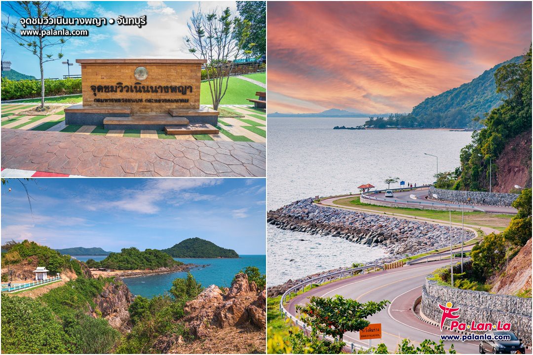 จุดชมวิวเนินนางพญา (Noen Nangphaya View Point) แลนด์มาร์คสำคัญของจันทบุรี ที่นักท่องเที่ยวไม่ควรพลาดที่จะมาชมวิว และถ่ายรูป โดยจุดชมวิวเนินนางพญานี้อยู่ที่ถนนเฉลิมบูรพาชลทิต เป็นถนนเลียบทะเลเมืองจันทบุรีที่ยาวที่สุดในประเทศไทย ตั้งแต่ชายทะเลด้านเหนือสุดไปยังชายทะเลด้านใต้สุดของจังหวัดจันทบุรี เมื่อมองจากจุดชมวิวก็จะเห็นทัศนียภาพที่สวยงามของท้องทะเลกว้างไกลสุดลูกหูลูกตาจรดกับเส้นขอบฟ้า บวกกับถนนที่มีลักษณะคดโค้งสวยงาม โดยเฉพาะในช่วงเวลาเย็นๆ ที่พระอาทิตย์ตก บริเวณนี้จะมีทัศนียภาพที่สวยงาม และน่าประทับใจมาก นอกจากนี้ ไม่ไกลจากจุดชมวิวเนินพญายังเป็นหมู่บ้านชาวประมงบ้านหัวแหลม ซึ่งนักท่องเที่ยวจะได้เห็นวิถีชีวิตของชาวบ้านที่ประกอบอาชีพประมงชายฝั่ง และสามารถชมทัศนียภาพที่สวยงามของอ่าวคุ้งกระเบนจากบริเวณบ้านหัวแหลมได้ด้วย
