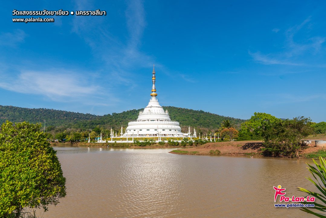 วัดแสงธรรมวังเขาเขียว (Wat Saeng Tham Wang Khao Khiao) เป็นที่ตั้งของพระมหาเจดีย์ศรีแสงธรรมวิสุทธิมงคล พระมหาเจดีย์รูปทรงดอกบัวสีขาวตั้งตระหง่านสง่างามอยู่กลางคูน้ำ ท่ามกลางสวนหย่อมสีเขียวขนาดใหญ่และแวดล้อมด้วยหุบเขาสีเขียวขจีของอำเภอวังน้ำเขียว