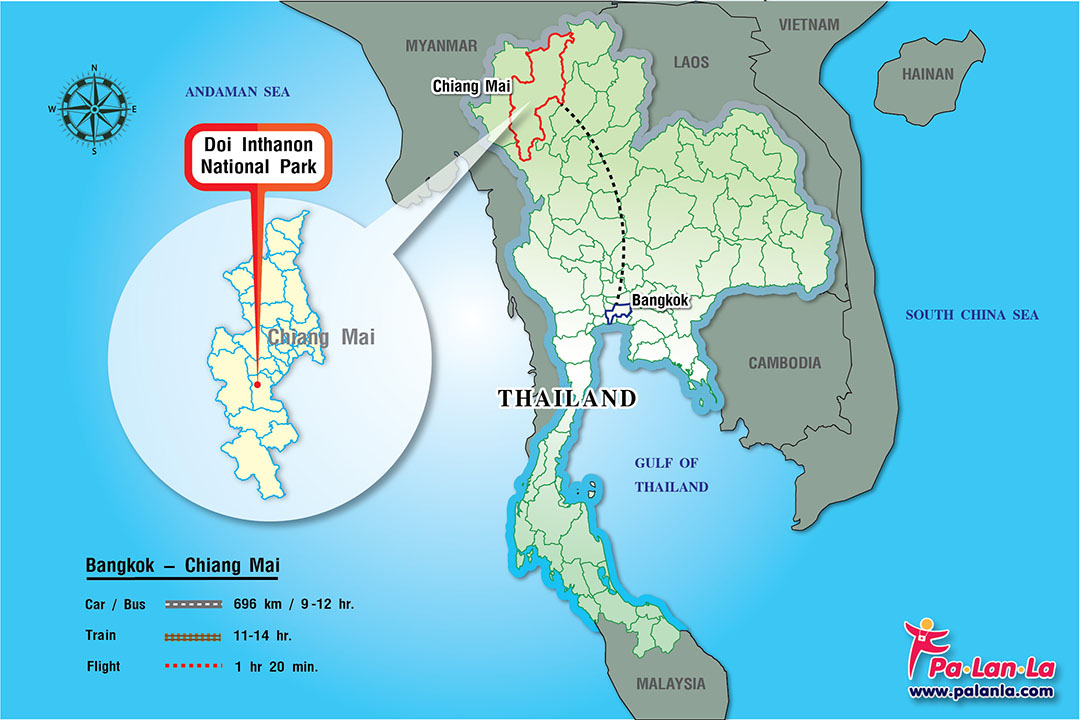 แผนที่ตั้ง อุทยานแห่งชาติดอยอินทนนท์ จังหวัดเชียงใหม่ ประเทศไทย