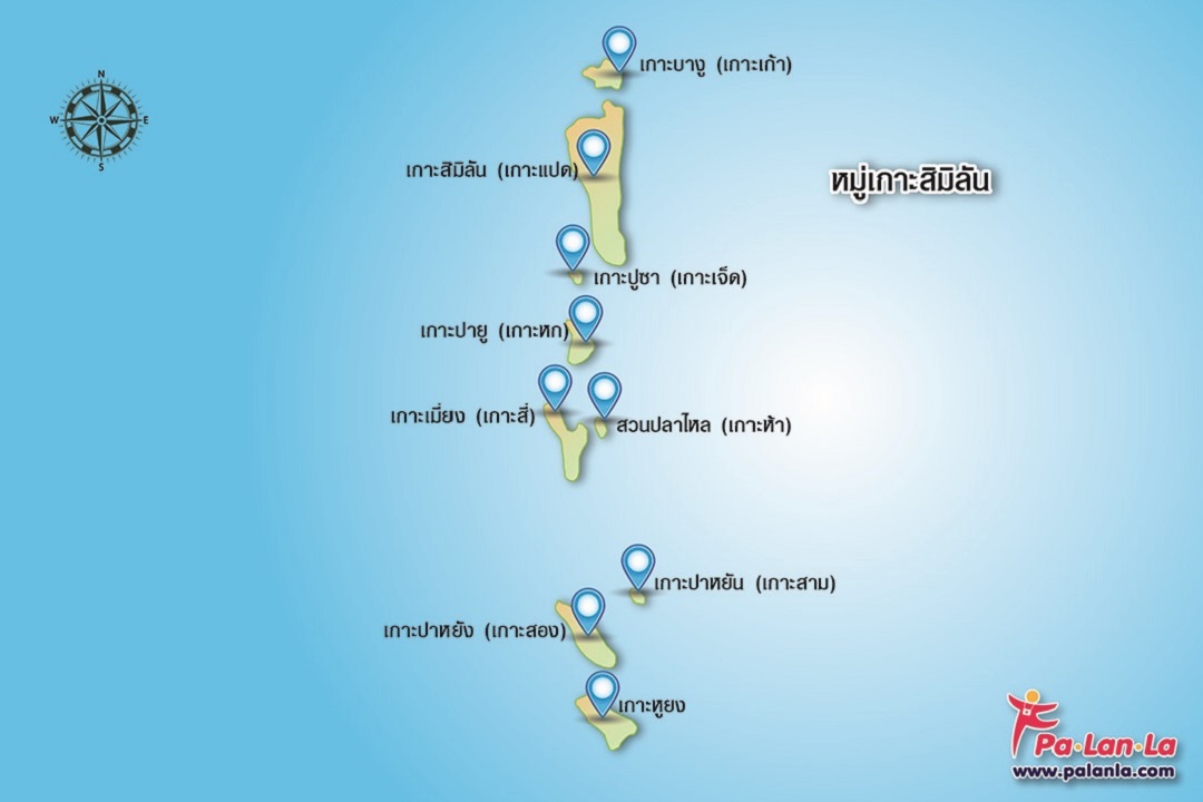 แผนที่ตั้ง หมู่เกาะที่อยู่ภายในอุทยานแห่งชาติหมู่เกาะสิมิลัน