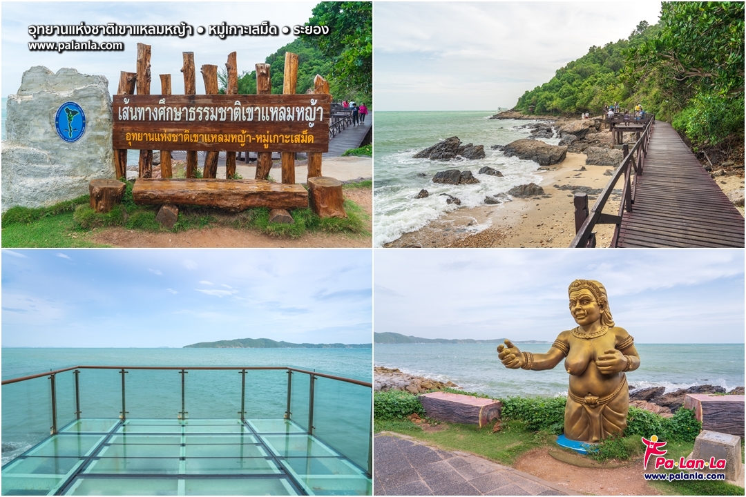 อุทยานแห่งชาติเขาแหลมหญ้า-หมู่เกาะเสม็ด จัดเป็นอุทยานแห่งชาติประเภทชายฝั่งผสมหมู่เกาะในทะเล ตั้งอยู่ริมฝั่งทะเลอ่าวไทยฝั่งตะวันออก จ.ระยอง มีพื้นน้ำทะเลประมาณร้อยละ 94 ของพื้นที่ทั้งหมด สภาพภูมิประเทศ ประกอบด้วย ภูเขาหินแกรนิต บริเวณเขาเปล็ด และเขาแหลมหญ้า มีความสูงจากระดับน้ำทะเลปานกลาง 108 เมตร มีหาดทรายและห้วงน้ำทะเลตื้นเป็นแนวยาว 12 กิโลเมตร ที่ชื่อว่า “หาดแม่รำพึง” และเกาะเสม็ดซึ่งเป็นเกาะที่มีขนาดใหญ่ที่สุดในหมู่เกาะทั้งหมดและมีชาวบ้านอาศัยอยู่ บริเวณใกล้ๆกับเกาะเสม็ด ยังมีกลุ่มเกาะเล็กๆ อีกหลายแห่งให้เที่ยวชม เช่น เกาะจันทร์ เกาะสันฉลาม และหินขาว นอกจากนี้ ยังมีเกาะในทะเลใกล้ชายฝั่งรวม 8 เกาะ ได้แก่ เกาะปลายตีน เกาะเกล็ดฉลาม เกาะมะขาม เกาะกรวย เกาะกุฎี เกาะท้ายค้างคาว เกาะทะลุ และเกาะยุ้งเกลือ และยังมีเส้นทางเดินศึกษาธรรมชาติ 3 เส้นทาง อยู่ที่ เกาะเสม็ด เกาะกุฎี และเขาแหลมหญ้า สามารถศึกษาข้อมูลเพิ่มเติมได้ที่ https://portal.dnp.go.th/Content/nationalpark?contentId=990