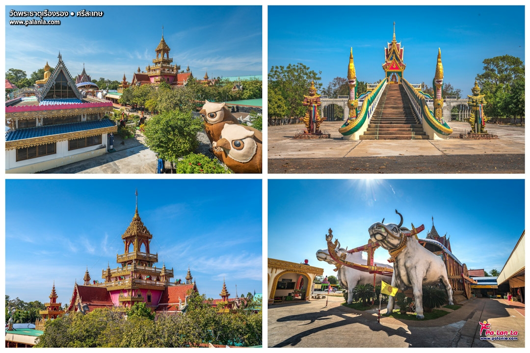 วัดพระธาตุเรืองรอง (Wat Phrathat Ruang Rong) เป็นที่ประดิษฐานพระบรมสารีริกธาตุ และเป็นอีกหนึ่งวัดสวยของภาคอีสานที่มีรูปแบบสถาปัตยกรรมที่มีเอกลักษณ์เฉพาะตัวจากการผสมผสานรูปแบบศิลปะอีสานใต้ 4 เผ่า ได้แก่ ลาว ส่วย เขมร และเยอ เข้าไว้ด้วยกันในรูปแบบวิหารทรงไทยหกชั้น โดยบริเวณชั้นหกจะเป็นที่ประดิษฐานพระบรมสารีริกธาตุ และเป็นจุดชมวิวเมืองศรีสะเกษ ที่นี่จึงเป็นวัดที่นักท่องเที่ยวนิยมมาเที่ยวชมความสวยงามและสักการะสิ่งศักดิ์สิทธิ์เพื่อความเป็นสิริมงคลอีกแห่งหนึ่งของศรีสะเกษ