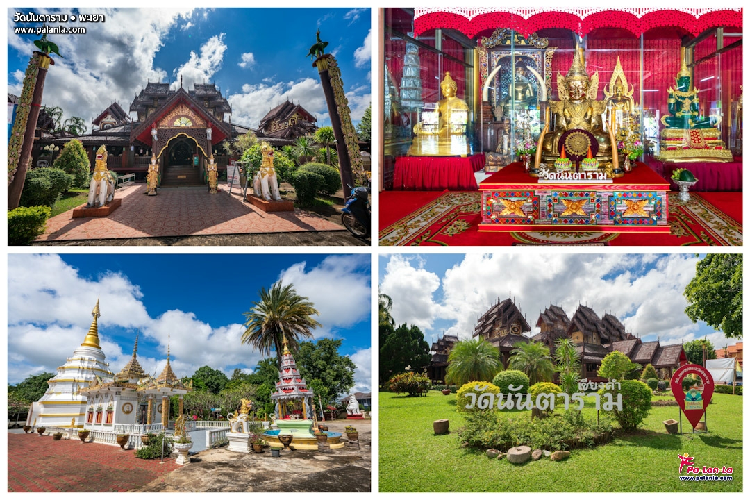 วัดนันตาราม (Wat Nantaram) ตั้งอยู่ในอำเภอเชียงคำ เป็นวัดที่มีสถาปัตยกรรมที่สวยงามอีกแห่งหนึ่งของพะเยา ไฮไลท์ของวัดแห่งนี้อยู่ที่วิหารไม้สักทั้งหลังที่สร้างขึ้นด้วยสถาปัตยกรรมพม่าแท้อย่างวิจิตรงดงาม ภายในวิหารประดิษฐานพระพุทธรูปปางมารวิชัยเป็นพระประธาน ซึ่งเป็นพระพุทธรูปไม้สักทองศิลปะมัณฑะเลย์ ทรงเครื่องแบบไทใหญ่ เชื่อกันว่ามีความศักดิ์สิทธิ์เป็นอย่างมาก นอกจากนี้ ภายในบริเวณวัดยังมีส่วนของพิพิธภัณฑ์ที่จัดแสดงธนบัตรเก่าและข้าวของเครื่องใช้โบราณให้เที่ยวชมอีกด้วย