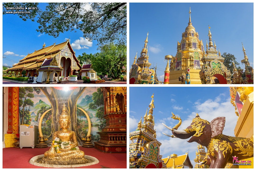 วัดพระนั่งดิน (Wat Phra Nang Din) เป็นวัดเก่าแก่ในอำเภอเชียงคำที่มีชื่อเสียงจาก “พระเจ้านั่งดิน” ที่เป็นองค์พระพุทธรูปที่ประดิษฐานอยู่บนพื้นวิหาร เนื่องจากในอดีตเกิดเหตุการณ์อัศจรรย์ที่ไม่มีใครสามารถยกพระพุทธรูปขึ้นได้ แม้ในยุคสมัยใหม่จะมีการอัญเชิญขึ้นบนฐานได้สำเร็จ แต่ก็เกิดเหตุประหลาดขึ้นโดยมีฟ้าผ่าลงมาที่หลังคาวิหารของวัดถึงสามครั้ง จึงเชื่อกันว่าท่านต้องการประดิษฐานอย่างเรียบง่ายบนพื้น จึงได้อัญเชิญองค์พระลงมาประดิษฐานที่พื้นเช่นเดิม วัดแห่งนี้จึงเป็นอีกหนึ่งสถานที่ศักดิ์สิทธิ์ที่ผู้มีจิตศรัทธาให้ความสนใจเป็นอย่างมาก