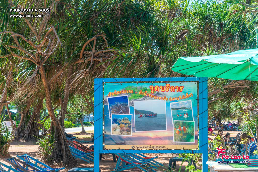 ที่หาดเตยงามมีบริการเรือท้องกระจก ดำน้ำชมปะการังที่เกาะไก่เตี้ยให้บริการ