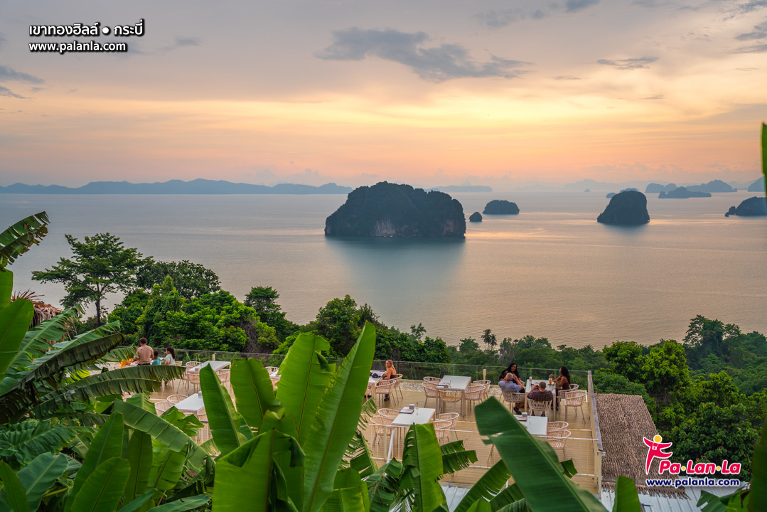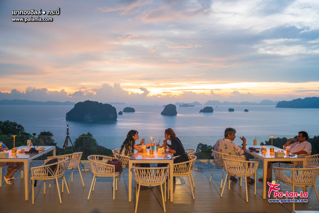เขาทองฮิลล์ (Khaothong Hill) ถือได้ว่าเป็นสวรรค์ของคนรักวิวทะเลและคาเฟ่ ด้วยวิวทะเลอันดามันที่กว้างใหญ่สุดลูกหูลูกตา ทำให้ที่นี่กลายเป็นจุดหมายปลายทางยอดนิยมสำหรับการชมพระอาทิตย์ตกดินที่สวยงามที่สุดแห่งหนึ่งในกระบี่